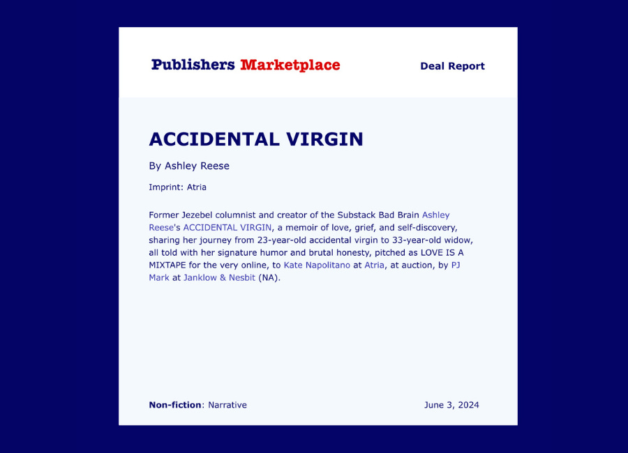 A few days ago, I made the announcement I’ve dreamed of making for years now: I got a book deal, and it was Publisher’s Marketplace Screenshot™ official.